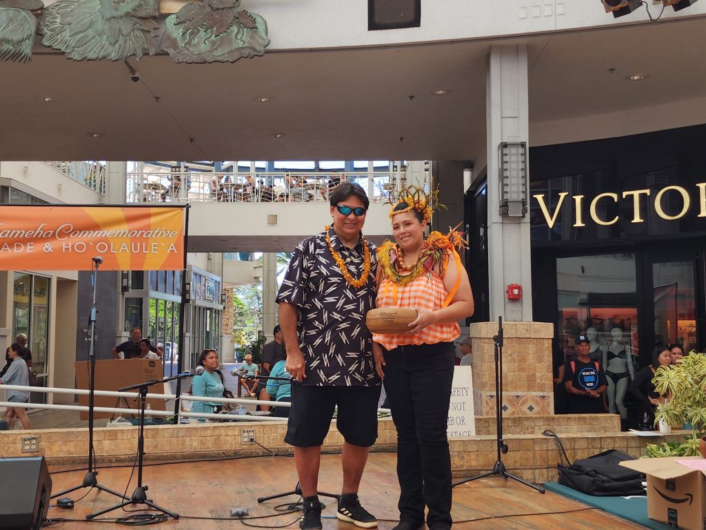 Following the parade, the Ho‘olaule‘a took place at Queen Ka‘ahumanu Center. The event featured entertainment by Reiko Fukino, Namaka Pauole & Friends, award-winning Ho‘okena, Hālau Kekuaokalā‘au‘ala‘iliahi, and Hālau Ke‘ala Kahinano O Puna. This year’s Hawaiʻi-wide theme was “He Inoa No Kalaninui Kamehameha” – Honor to Kamehameha the Great.