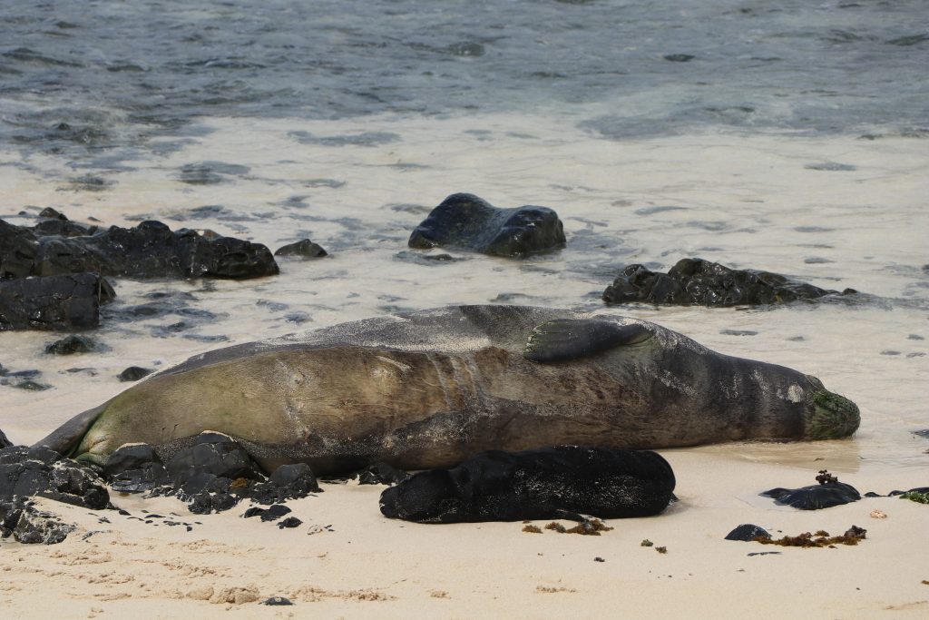 Hawaiian monk seals are critically endangered animals with fewer than 1,400 left in the world. “Once restricted to the Northwestern Hawaiian Islands, it is an incredible privilege to see these endangered animals reproducing in the main islands,” department officials said.