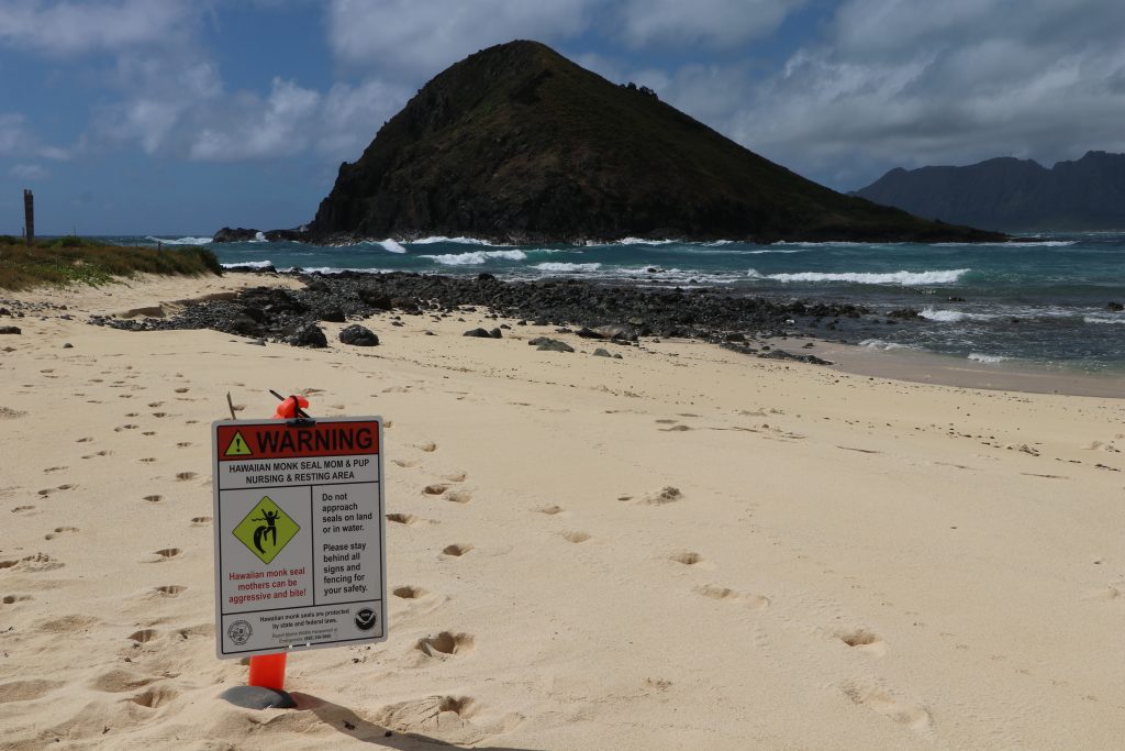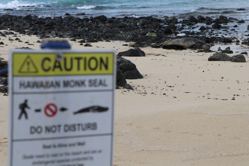 Signs, detailing NOAA’s “Seal Resting Area” guidelines are already up at Moku Nui and additional signage warning about beach landings will be placed this week. Biologists say having kayaks coming and going from the islet will likely disturb the mother seal and her pup and thus could be considered a ‘take’ of a protected species which is prohibited by both state and federal law.