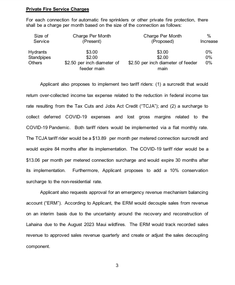 Hawaiʻi Water Service also requests approval for an emergency revenue mechanism balancing account, which the company states would decouple sales from revenue on an interim basis, due to uncertainty around the recovery and reconstruction of Lahaina from the August 2023 Maui wildfires.