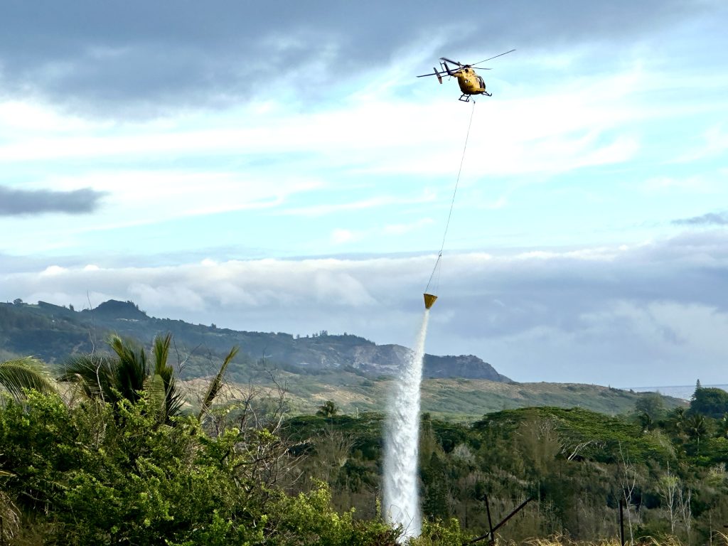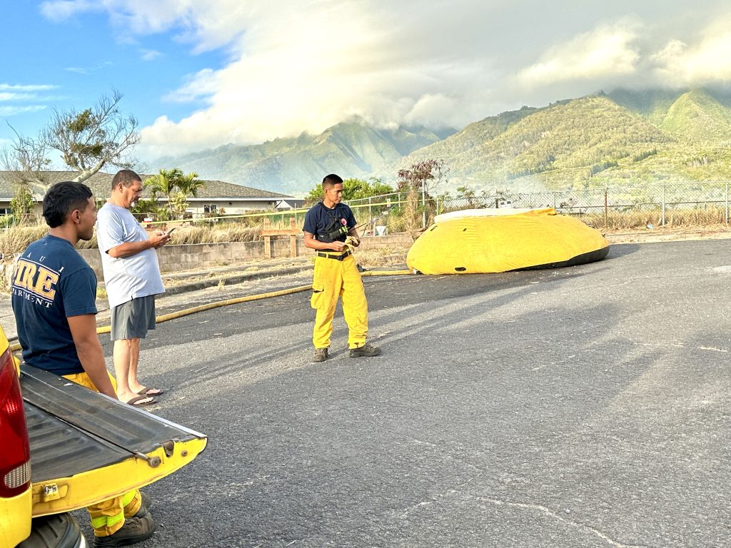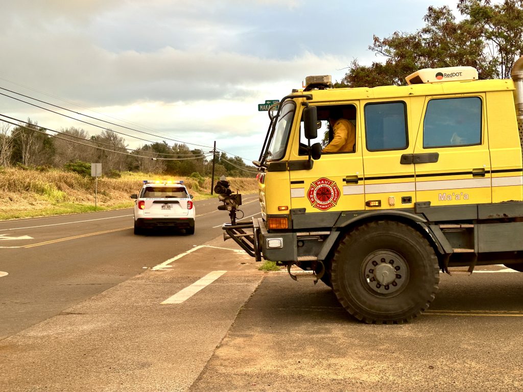 The department responded to the Waiehu fire with three engines, three wildland trucks, three tankers and the Air One helicopter. Three tankers from Mahi Pono and one from Alpha Construction also responded to the scene, along with two bulldozers from Alpha Construction.