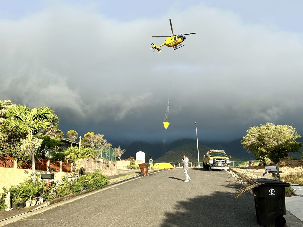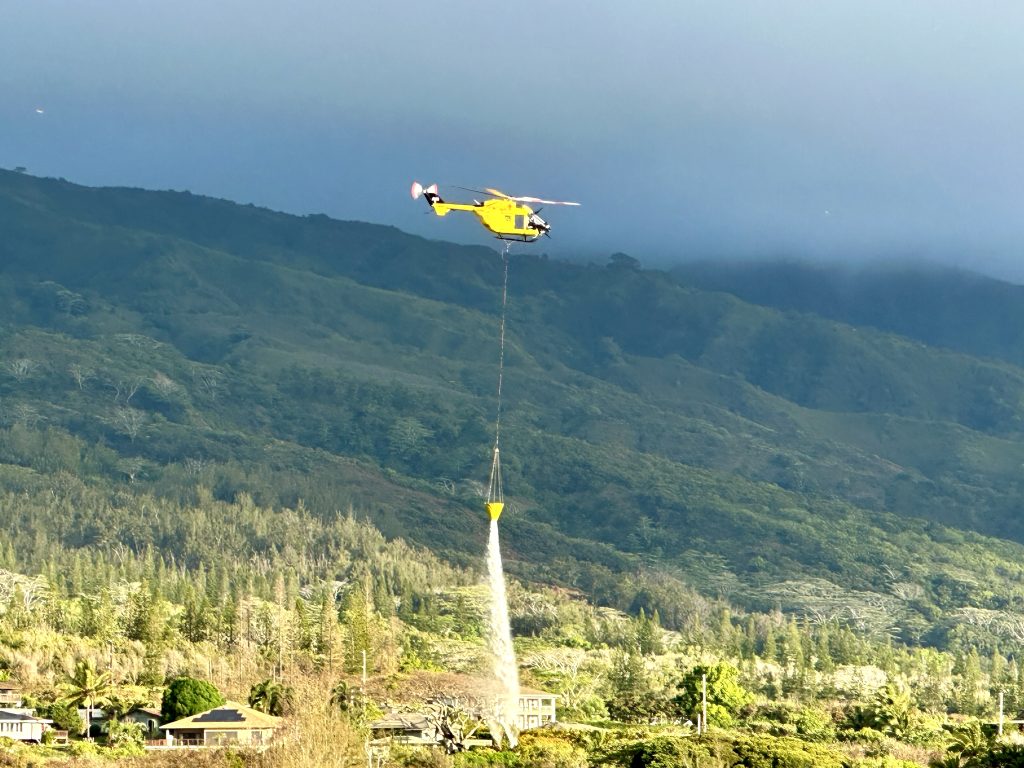 Earlier, residents could see and smell smoke as the Maui Fire Department’s Air One helicopter flew in numerous water drops to douse blaze first reported at 2:17 a.m. Thursday in the area mauka of Kahekili Highway near Maka’ala Drive. As of 7:30 a.m., the fire was estimated to have burned about 19 acres.