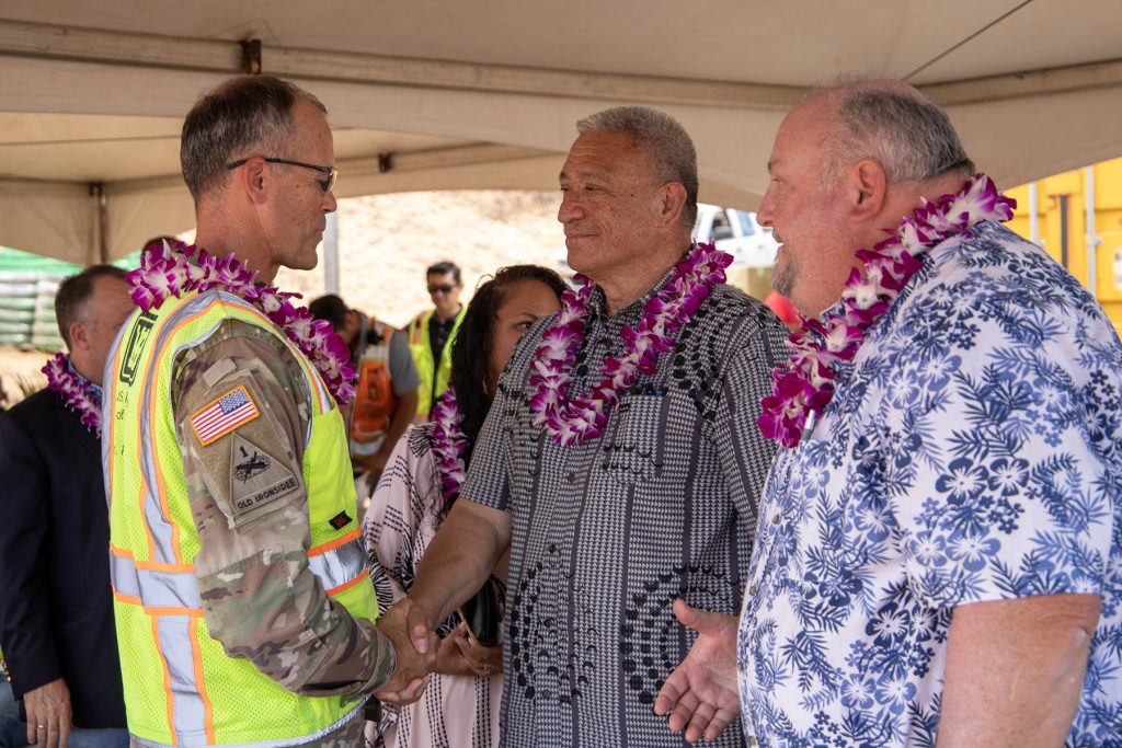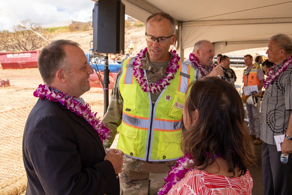 Among those participating in the ceremony were Gov. Josh Green, M.D., Maui Mayor Richard Bissen, FEMA Region 9 Administrator Bob Fenton, and US Army Corps of Engineers Recovery Field Office Commander Col. Eric Swenson.
