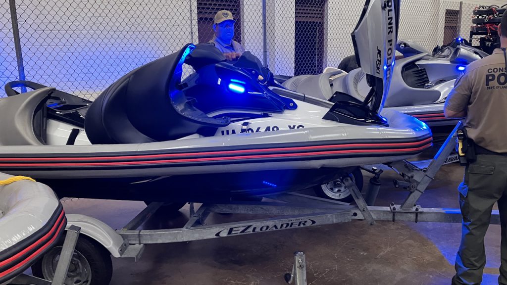 “I operated vessels out of Māʻalaea Small Boat Harbor for 21 years. The area around Ukumehame is known to be windy, but that night was the windiest I’d ever experienced, said DOCARE Officer Joseph Carvalho Jr. “Once we finally got to Lahaina at about 1 a.m. on August 9, the biggest challenge we faced was all the debris in the water. It was blowing offshore and trying to navigate through that and not suck debris into our skis or boat was really difficult.”
