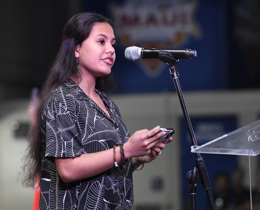 A series of speakers representing Lahaina’s community, churches, kūpuna and youth paid tribute to all that Lahaina stands for – its proud legacy, its rebuilding and recovery efforts and, especially, the future greatness that all of Lahaina and Maui are working to achieve.