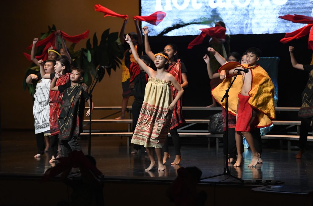 Calling it their love letter to Lahaina and to Maui, nearly 150 Kamehameha Schools Kapālama fifth-grade students shared their live stage production “Ka Malu ʻUlu o Lele: The Shaded Breadfruit Grove of Lele,” with the Maui community on Saturday, Aug. 10 at Baldwin High School auditorium in Wailuku.