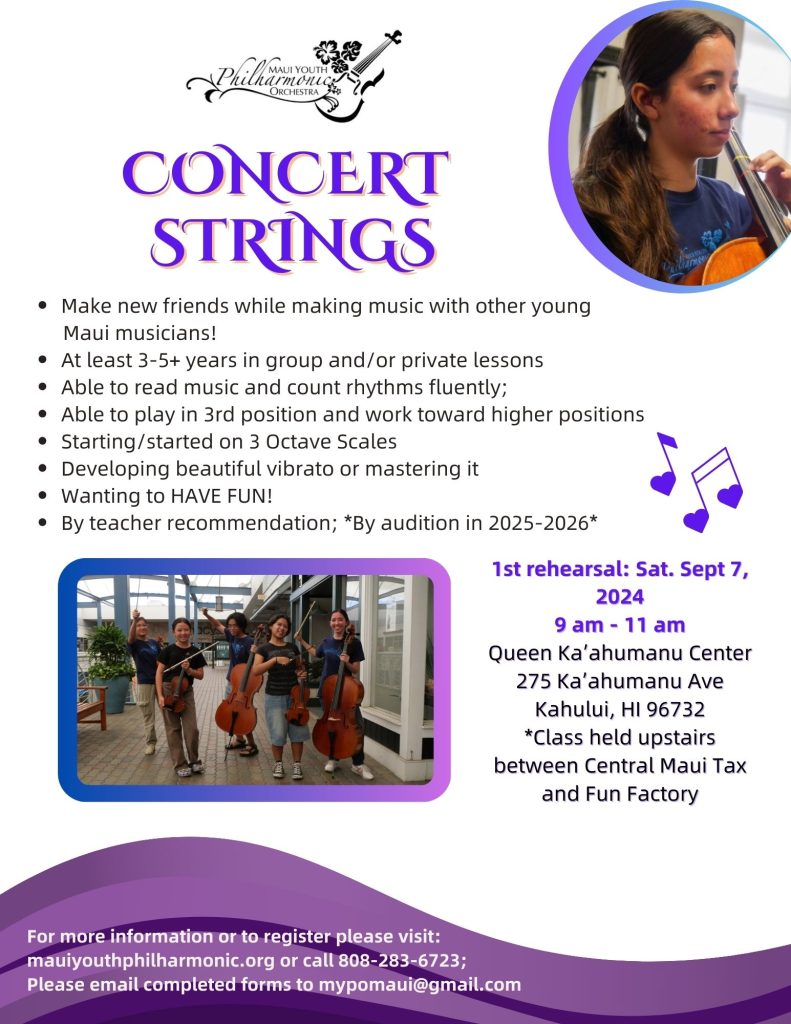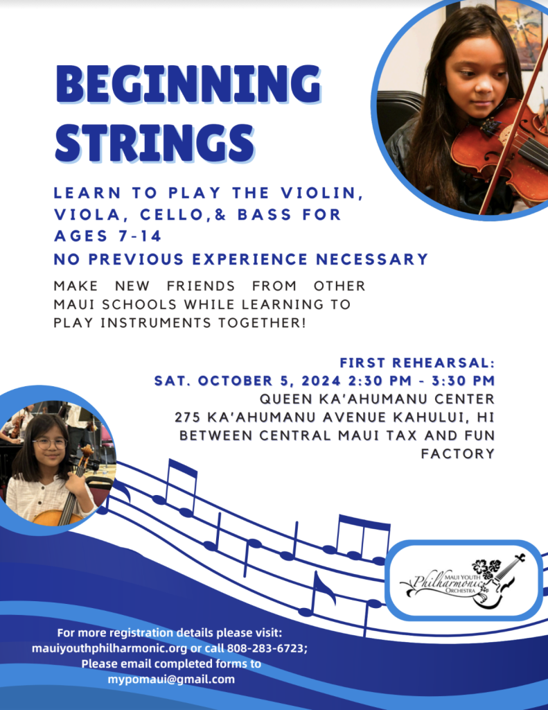 For further information, visit mauiyouthphilharmonic.org, email mypomaui@gmail.com or call/text 808-283-6723.