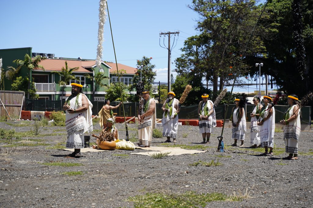 Held on Kūpau (6th day of the lunar month), the ceremony incorporated four main components: ʻAha Kapuahi Holoi Pōʻino ʻĀina, Pī Kai Huikala a Hoʻolaʻa ʻĀina, ʻAha Pāpāia ʻAwa, and ʻAha Kuahu Hula. At the close of the ceremonies, ʻawa noa was served over which attendees expressed their support for the facility, emphasizing its importance in preserving the cultural heritage of the island and providing a space for present and future generations to connect with, perpetuate, and further develop legacy ʻŌiwi arts.