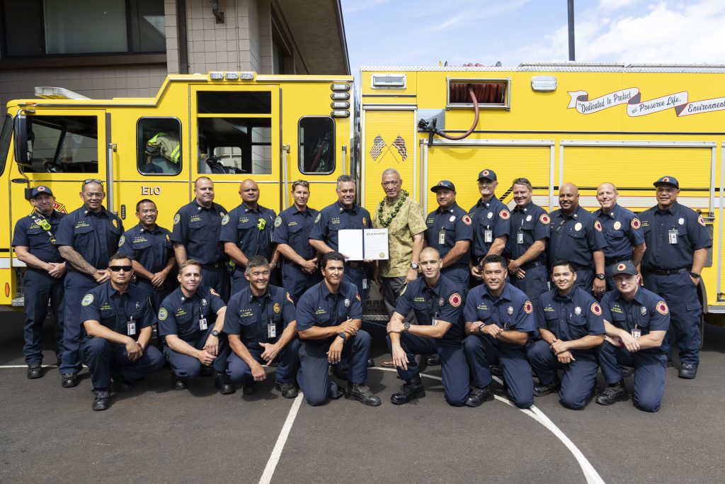 In his proclamation, Mayor Bissen paid tribute to the firefighters, civilian employees and community members who have contributed to the departmentʻs successes over the years.