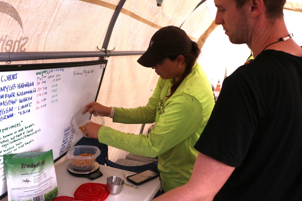 The birds spent several weeks in a field aviary at the release site learning to use the feeders and getting accustomed to wearing their new backpacks. The dedicated team of biologists and staff watched over the ʻalalā during this time and poured themselves, physically and emotionally, into providing the best environment and care for these birds.