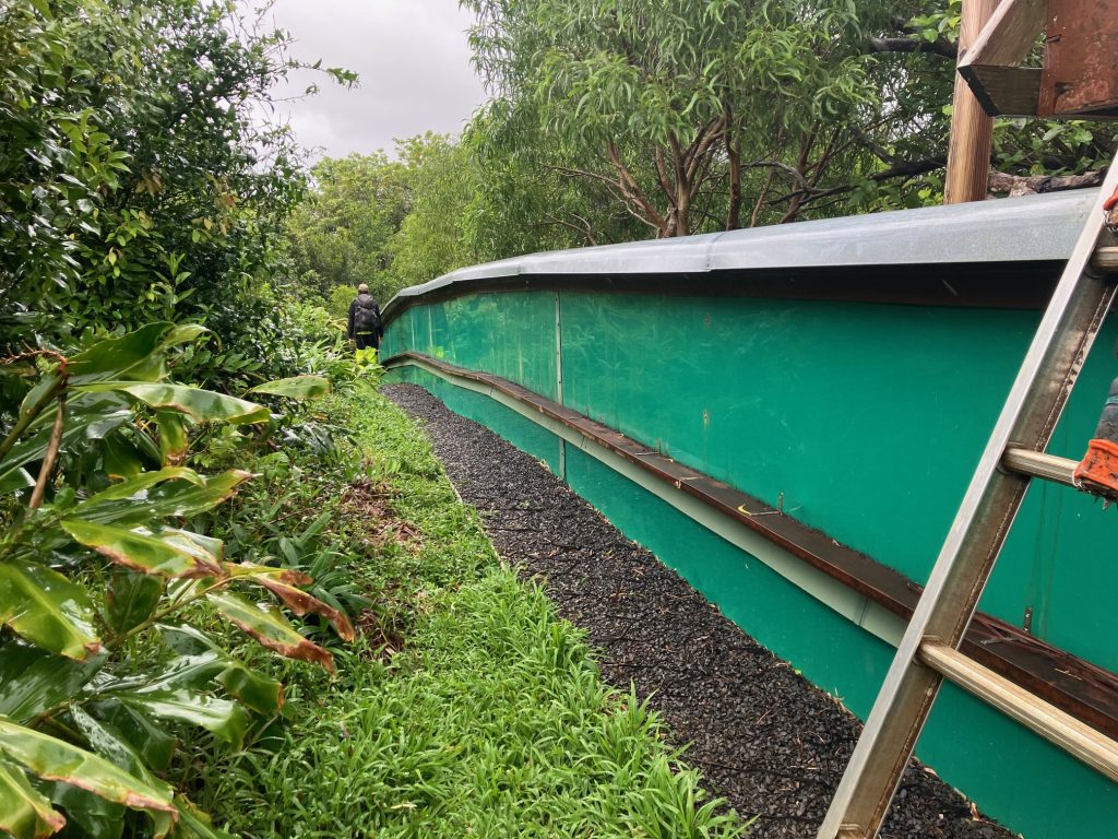 Five-foot-tall polyethylene walls fixed with angled flanges, copper wire mesh and a hood barrier exclude rats, Jackson’s chameleons and the cannibalistic rosy wolf snail, the key introduced predators of Hawai‘i’s native snails and their main cause of extinction.