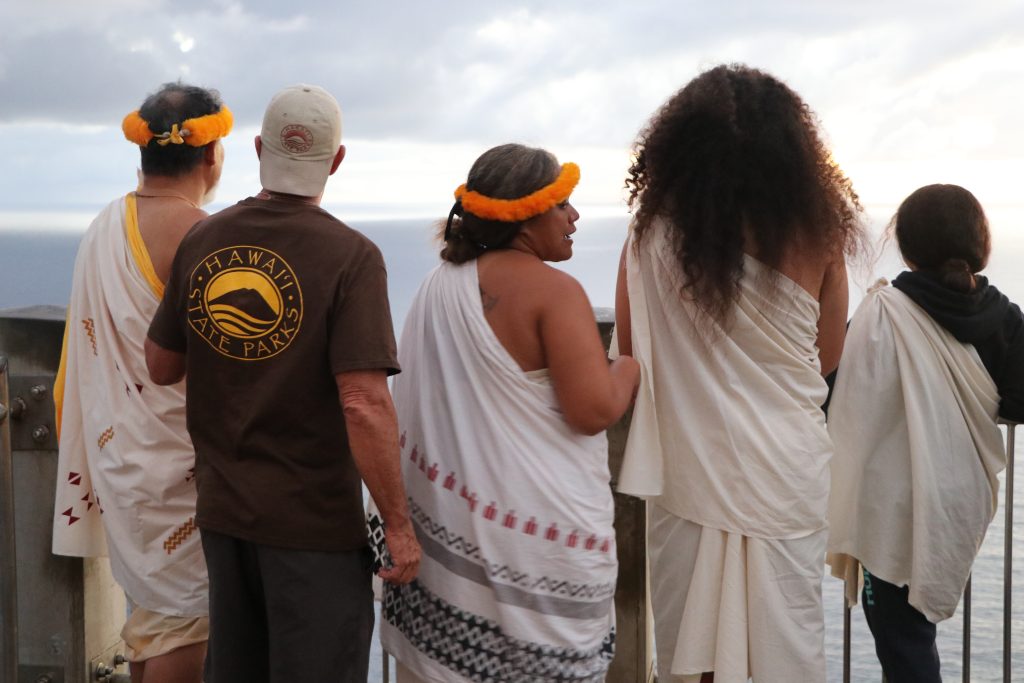 The summit viewing platform will be closed before and during sunrise to provide space for the pū, oli and the taiko drummers. It reopens after the performance.