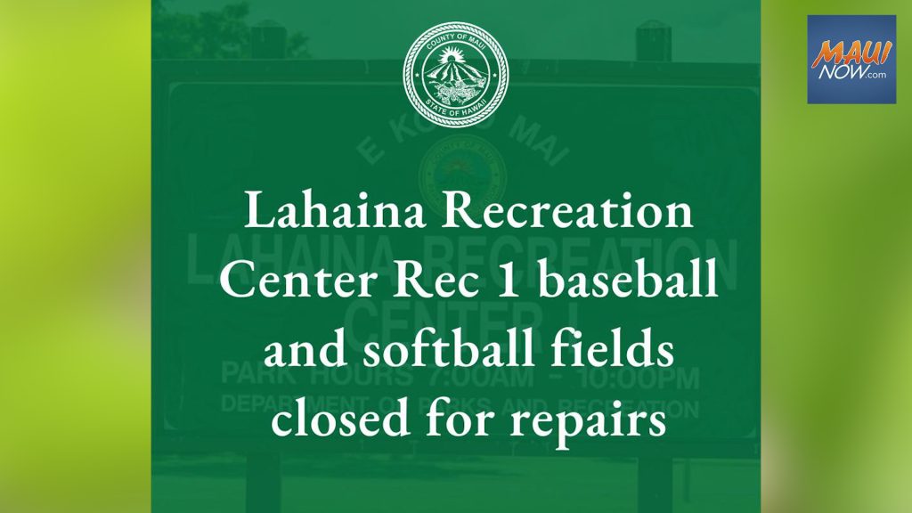 Lahaina Recreation Center’s Rec 1 baseball and softball fields are closed while repairs of a water pump are underway.
