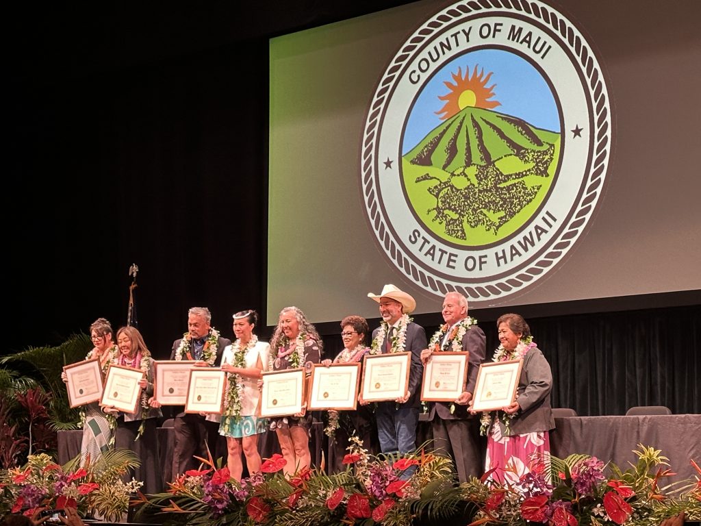 Second Circuit Judge Kirstin Hamman administered the oath of office to all nine council members, all of whom were re-elected and returning to office for another term. In alphabetical order, they are: Tom Cook (South Maui), Gabe Johnson (Lānaʻi), Tasha Kama (Kahului), Alice Lee (Wailuku-Waiheʻe-Waikapū), Tamara Paltin (West Maui), Keani Rawlins-Fernandez (Molokaʻi), Shane Sinenci (East Maui), Yuki Lei Sugimura (Upcountry) and Nohelani Uʻu-Hodgins (Makawao-Haʻikū-Pāʻia).
