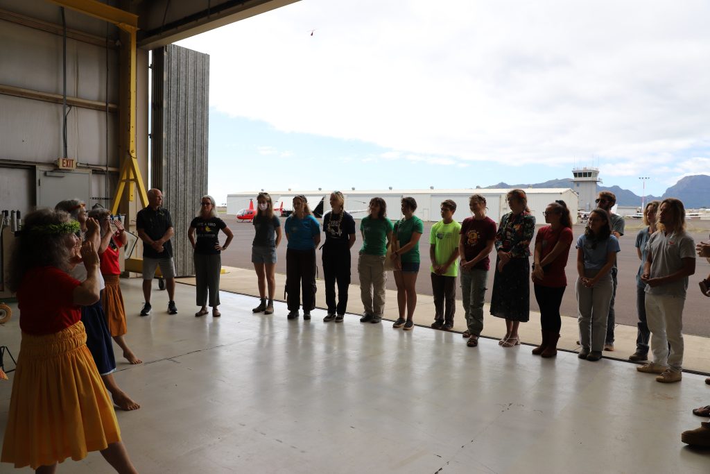 In a hangar on the north end of the Līhuʻe International Airport, more than two dozen people gathered on Monday to bless the beginning of another field season.