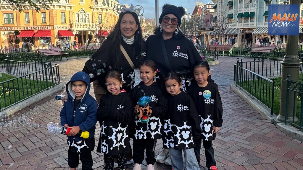 Families from Ka ʻIwa Hoʻolaʻi, a hui (group) dedicated to celebrating and normalizing the use of Hawaiian language, traveled to Disneyland, bringing their culture and language with them.