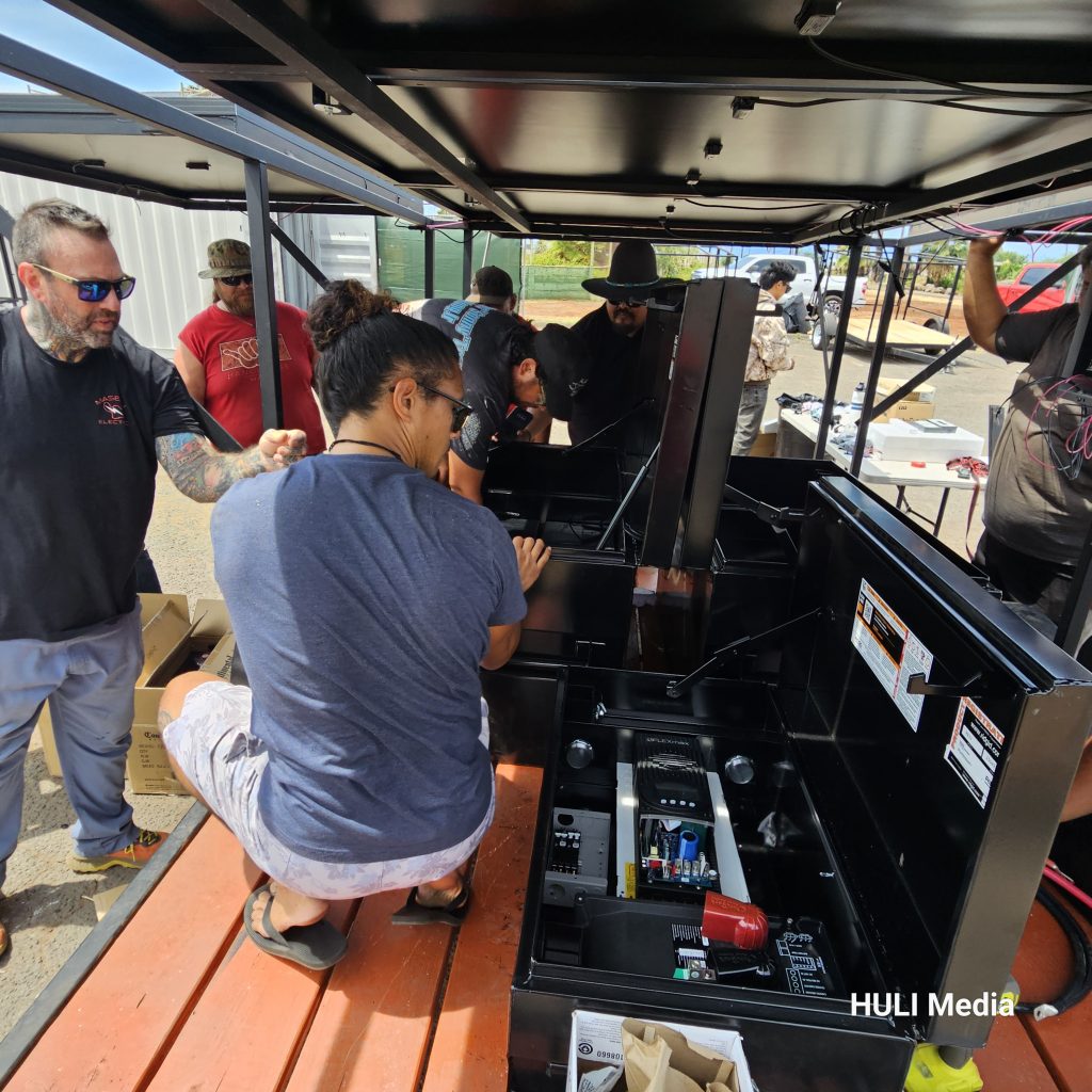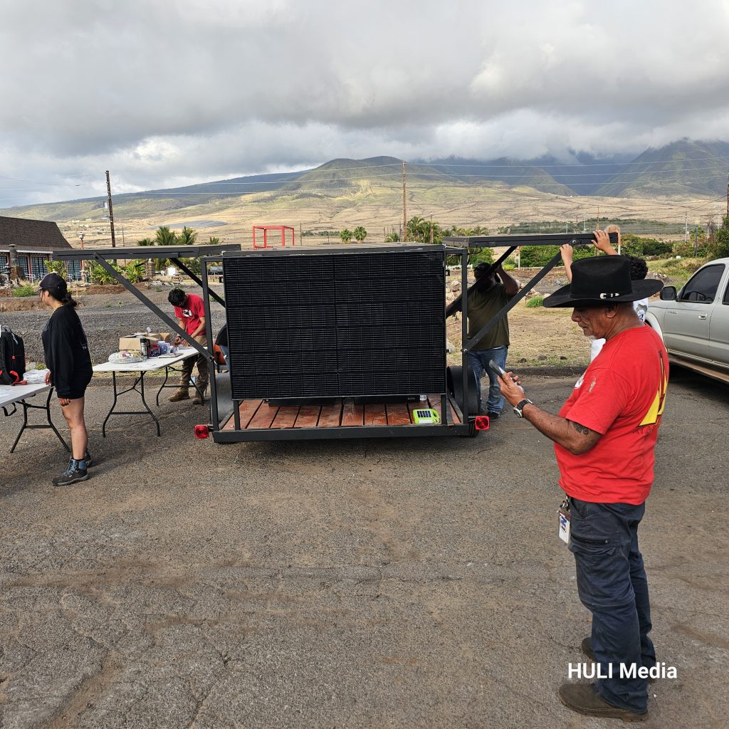 The solar trailers were designed by Navajo Power, whose team previously collaborated with HULI during the 2019 Maunakea movement. Bret Isaac, lead designer, traveled to Maui to help with the training alongside Hilo-based Ultimate Off-Grid Solar, which provided technical and logistical support.