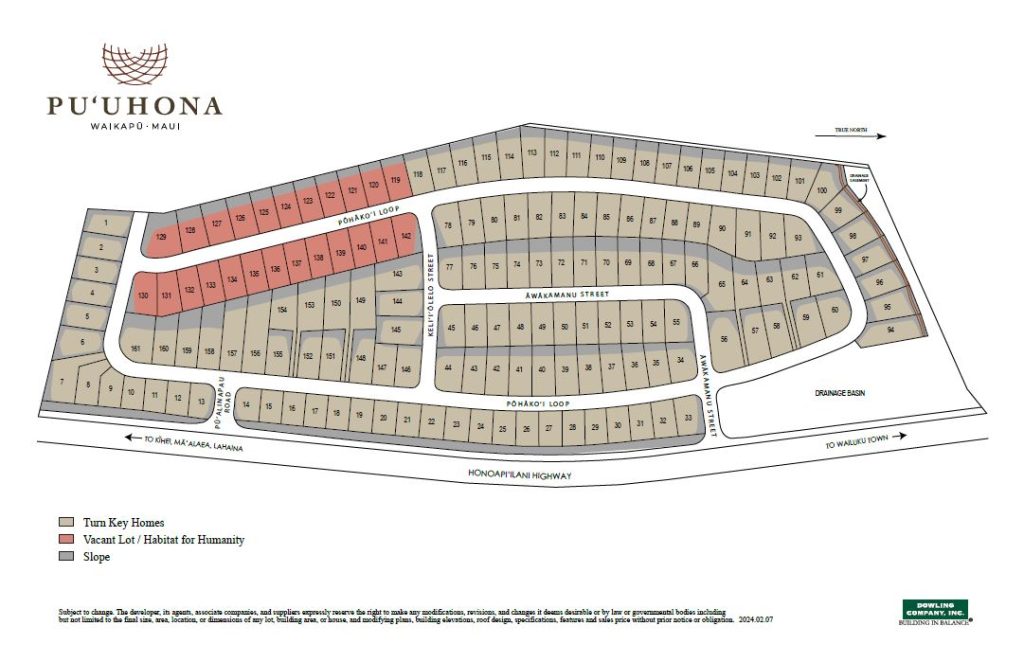 DHHL’s Puʻuhona project is the department’s first turnkey residential homestead community on Maui in 17 years and its first Act 279 project. The approximately 47-acre parcel in Waikapū will consist of 161 single-family lots: 137 turnkey homes and 24 vacant improved lots.