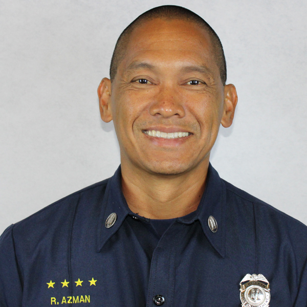 Reza Azman joined the department in 2002. As a Firefighter, he worked in Lahaina and Makawao. Following his promotion to Firefighter III in 2012, he worked in the Training Bureau, Lahaina, and Pāʻia. He was promoted to Captain in 2020, working in Lahaina. He has taken over as one of the Battalion Chiefs for the second battalion. Azman is a 1994 graduate of Seabury Hall and attended the University of Oregon and the University of Hawaiʻi, graduating in 2000.