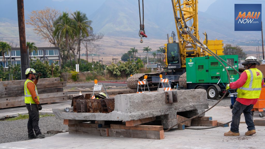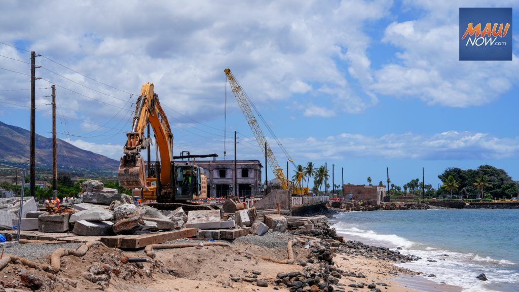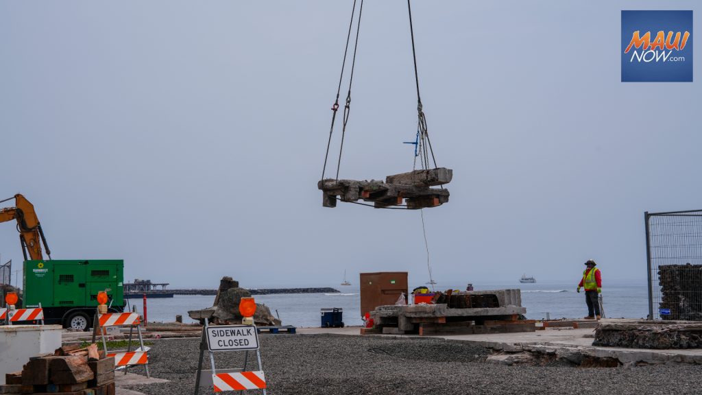 All 237 nonhistorical, concrete pilings along Front Street in Lahaina have been removed — totaling approximately 500 tons of material. A press release announcement from the County of Maui described the achievement as “a significant step forward in Maui wildfire recovery efforts.”