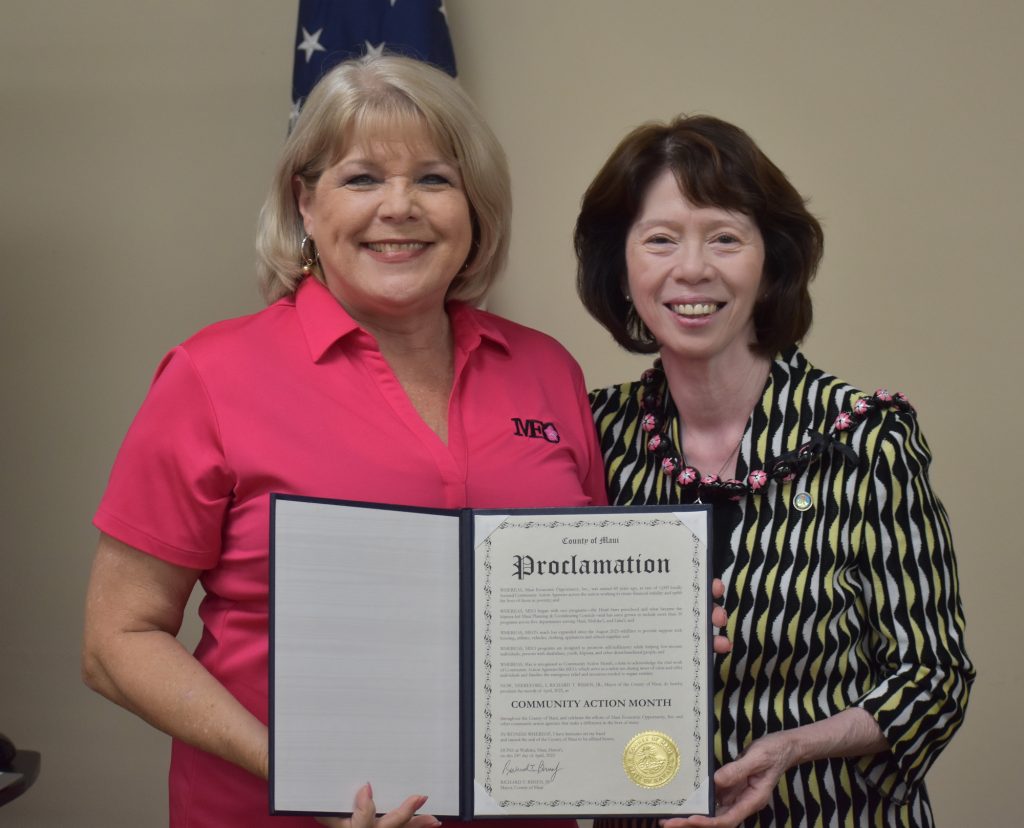 The nonprofit Maui Economic Opportunity was praised as the county’s Community Action Agency in a proclamation declaring Community Action Month in Maui County.