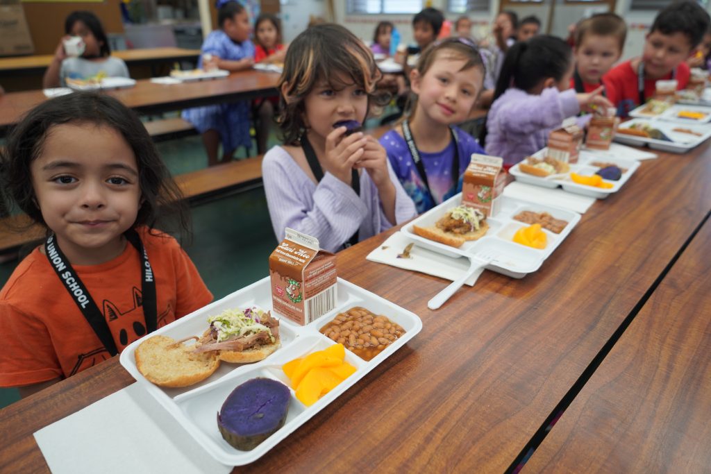 Local ʻuala has frequently made its way onto school menus in recent years, either in its steamed form like this month, or in special dishes like Okinawan sweet potato pie, sweet potato mash, and sweet potato yogurt bowls. Next school year, students will see the Okinawan sweet potato mash on their lunch menus and Okinawan sweet potato yogurt bowl on their breakfast menus.