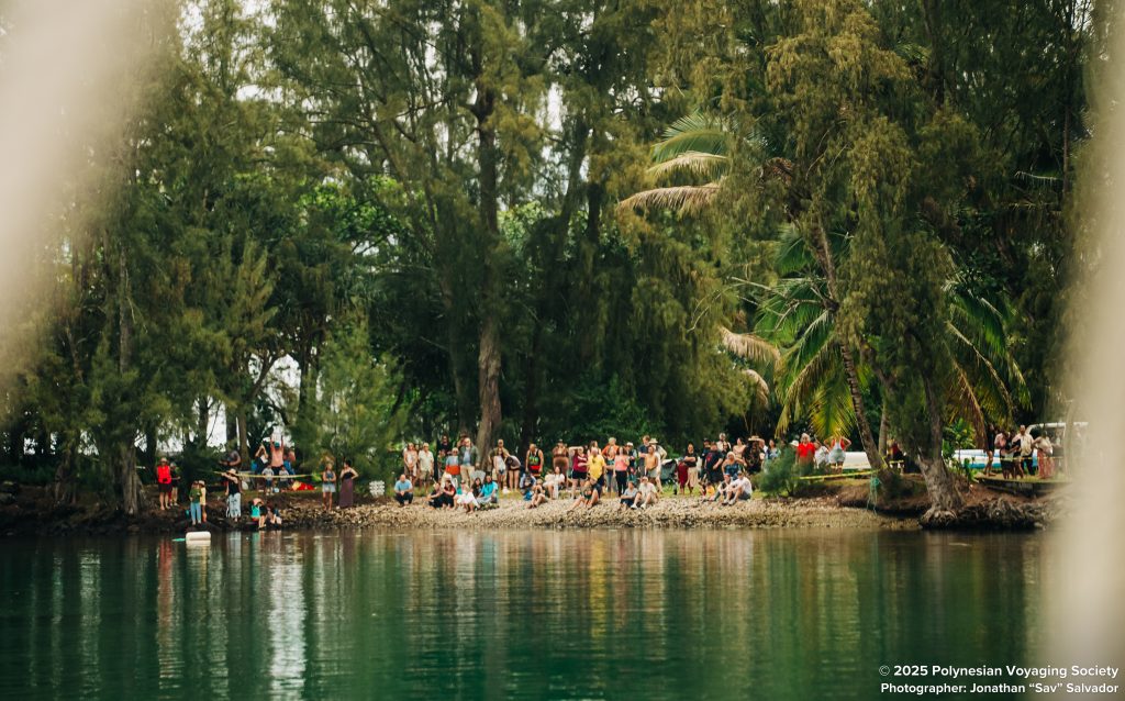 As the canoes pushed off from Palekai, the air was filled with the sound of traditional Hōkūleʻa voyaging chants and the deep, resonant calls of pū (conch shell) blown from the shore. Tahitian dance troupe O Tahiti E added to the powerful sendoff with rhythmic drumming, dancing and singing, connecting Tahiti and Hawai‘i through cultural expression and shared voyaging heritage.
