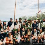 Prior to departure, Kumu Hula Kekuhi Kealiʻikanakaole and her haumana led a cultural departure ceremony. Together with the crew, they chanted Hōkūleʻa’s genealogy honoring the people and places from the canoe’s 50-year legacy and the ancestral knowledge that guides the crew across Kealaikahiki. As the chant was concluding, a downpour over the gathering and canoes soon gave way to sunshine and fair winds.