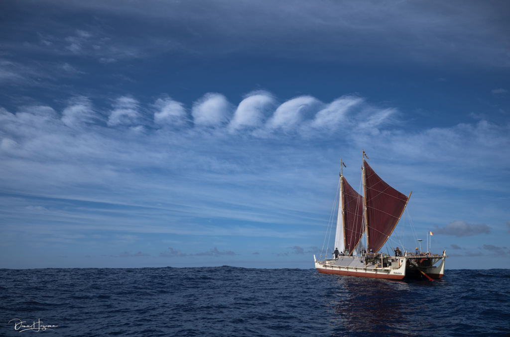 After the arrival ceremony, the crew, along with Polynesian Voyaging Society (PVS) CEO and navigator Nainoa Thompson, were taken inland to the Marae of Apu Terai, the sacred heiau of the Apu Dome Terai Sky. There, the crew was hosted by the Fa’aravaianu’u Cultural Association, which led a powerful homecoming blessing and ceremony for Thompson. The Apu Terai marae is the ancestral family marae of Thompson’s Paoa lineage.