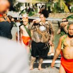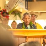 After four days of community engagements in Mataiea, Tahiti, the canoes departed Tehoro Marina on the morning of Thursday, July 10, and made their way across the channel to Moʻorea. They arrived that same day into Opunohu bay, where they were welcomed in a warm and celebratory way at the Papetōʻai dock, where they were greeted by local leaders, including the mayor and the welcoming embrace of the Moʻorea community.