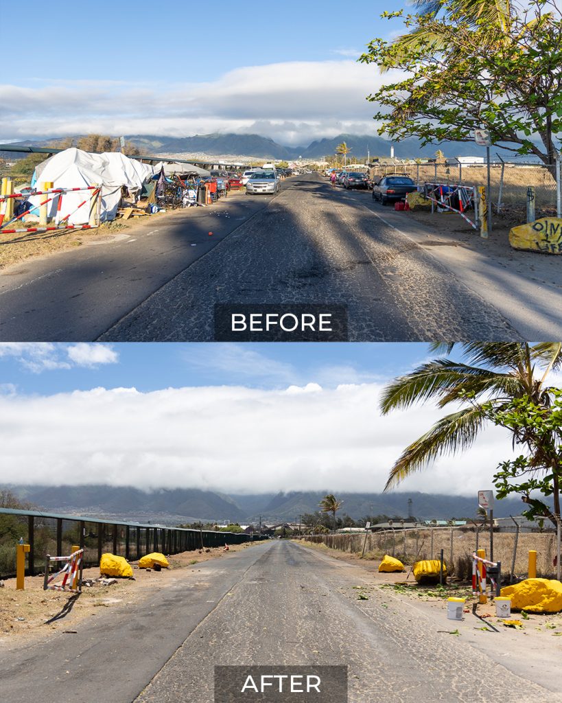• Amala Place before and after cleanup / maintenance. PC: County of Maui (July 17-18, 2025)