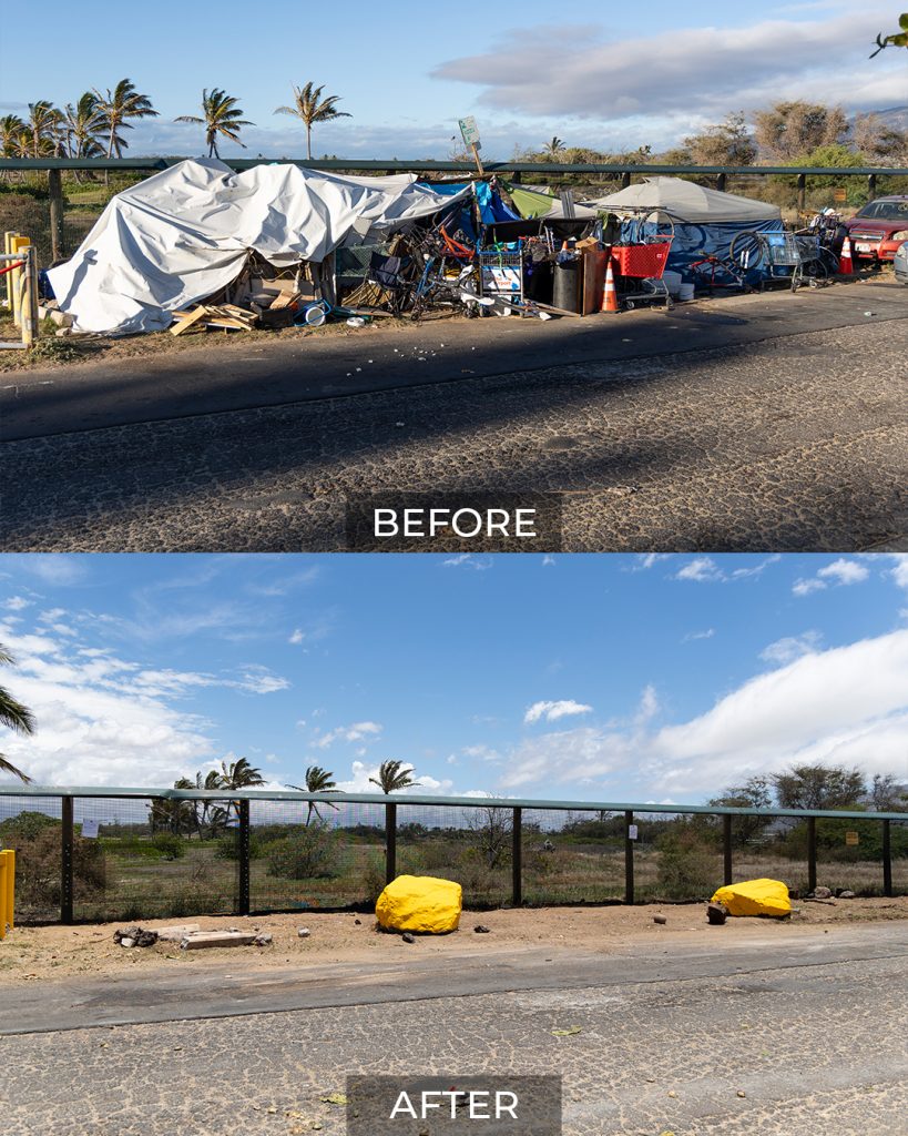 “The combined efforts of various dedicated service providers and community agencies made a tremendous difference,” County of Maui Director of Public Affairs Mahina Martin said. “Teams from Family Life Center, the Salvation Army, Maui Rapid Response and Maui Medics Hui were actively helping for several weeks. Their work, in addition to the efforts of many, such as Ka Hale A Ke Ola Homeless Resource Center, Maui Mental Health Kōkua, Hunaman and Aloha House, ensured that anyone unsheltered in the area could receive help and support if desired. With heavy equipment and crews conducting work, it was important that individuals were not in harm’s way. County teams and numerous community organizations were able to help meet the needs of vulnerable residents through their concerted efforts and care.”