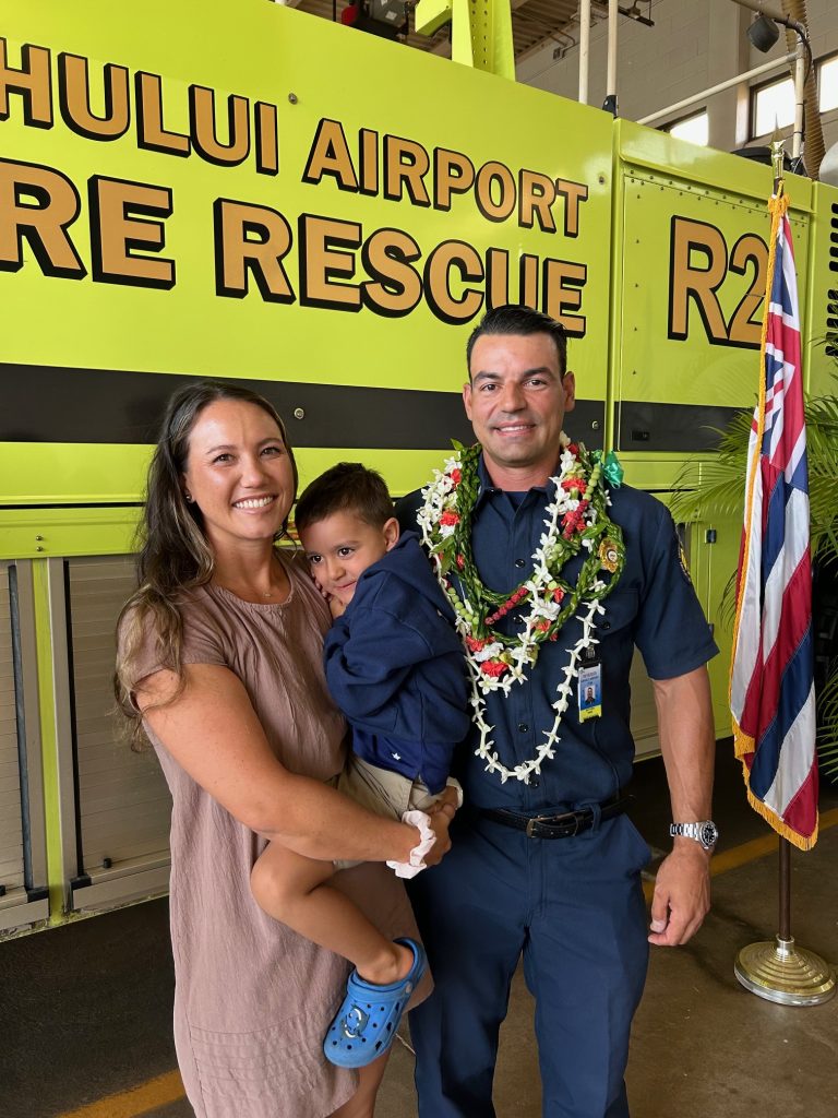 Matthew Pires, 36, becomes the youngest fire chief in history at the Kahului Airport Rescue & Fire-Fighting station, according to family members. He follows in the footsteps of his dad, Scott “Pomai” Pires who was Maui Airport Fire Chief for almost 10 years, retiring in May 2022.