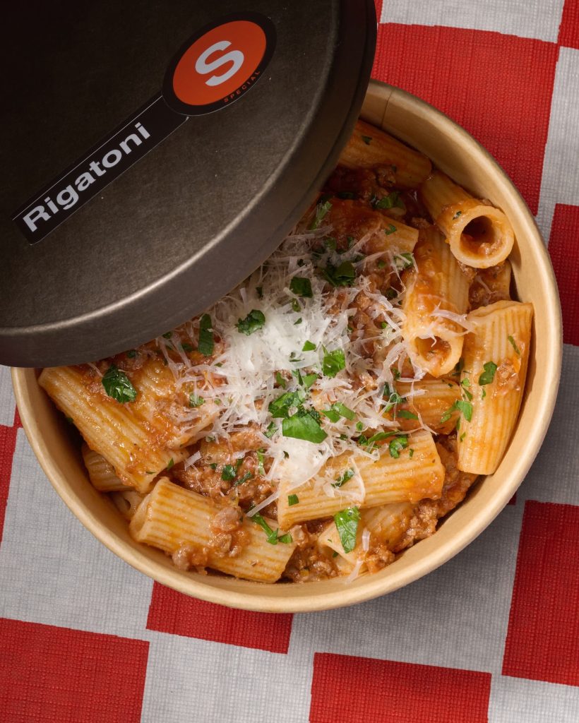 Guests can choose from house-made pastas like rigatoni, fusilli, or spaghetti, and pair them with signature sauces such as basil pesto, marinara, or parmesan cream. Gluten-free options are available. At the pizza counter, classic New York cheese and pepperoni slices share space with Roman-style white pies topped with mozzarella and spicy Calabrese.