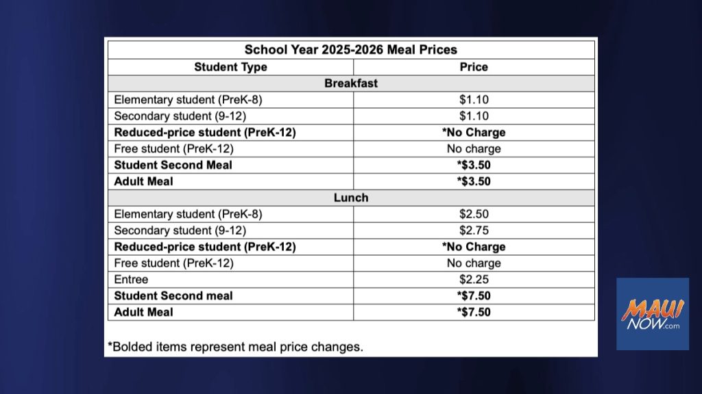 Starting in the 2025-26 school year, the Hawai‘i State Department of Education will implement changes to school meal pricing, including expanded access to free meals for more students.