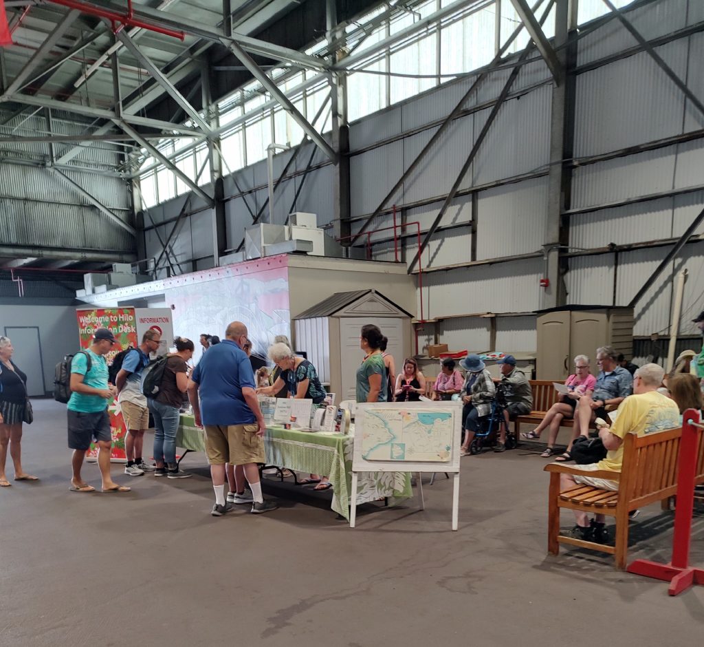 The Hilo Harbor Pier Greetings Program welcomes cruise ship passengers with authentic Hawaiian music as they step onto Hilo Pier and then inspires them to explore downtown Hilo through personal interactions and information at the Aloha Information Center. Organization: Destination Hilo Foundation.