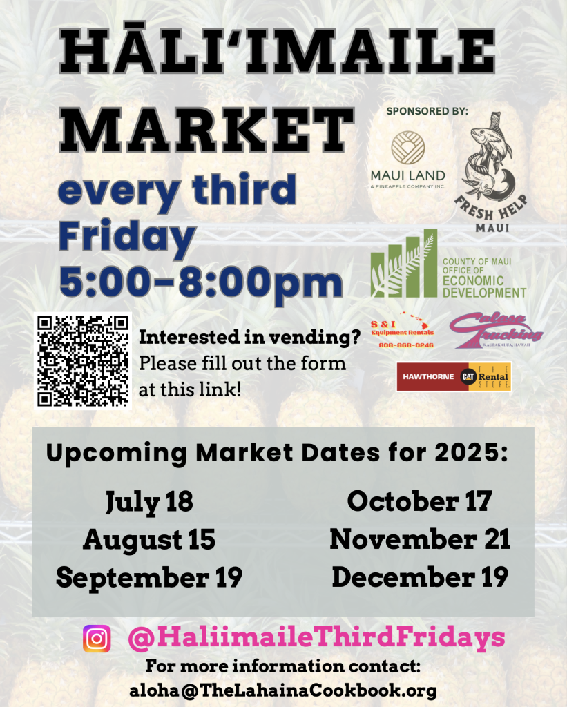 For more information on how to participate or get involved in supporting the event, contact HaliimaileThirdFridayMarket@gmail.com. Vendor forms are available here. To learn more about Fresh Help Maui and their vision to sustain a circular economy that reinvests in the island, visit freshhelpmaui.org.