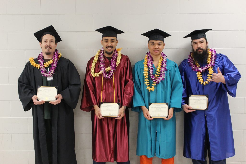 Vice Principal Kurt Ginoza issued diplomas to the graduates during the ceremony at the facility. One of the five inmates was not present because the inmate has since been released from custody.