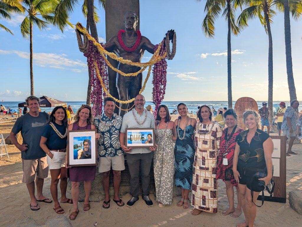 The striking plate design was gifted by acclaimed local artist Kamea Hadar, known for his vibrant portraits and murals celebrating Hawaiian culture and iconic figures. The unveiling was a meaningful tribute to Duke, preceded by a reverent lei draping ceremony at his statue in front of the waters where he grew up.