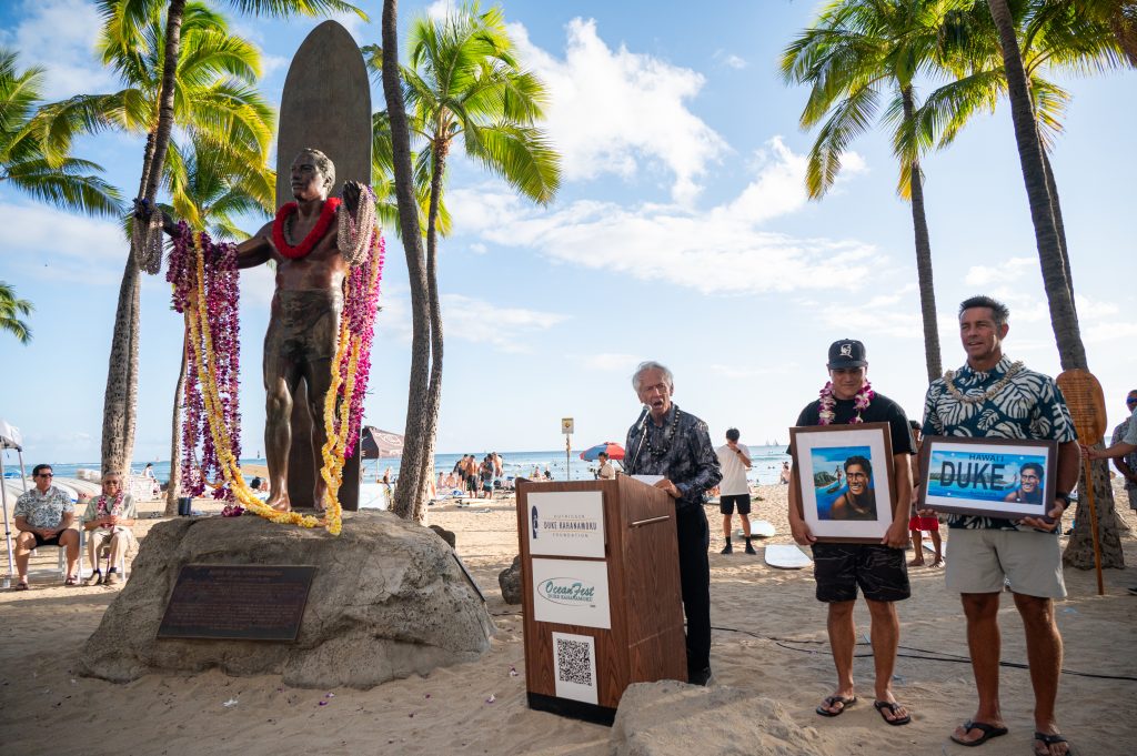 The Duke Kahanamoku OceanFest continues through Aug. 24, celebrating Hawaiʻi’s beloved waterman through amateur ocean sports competitions, including keiki surfing, longboarding, beach volleyball, ocean swimming, foil surfing, lifeguard competitions, surfboard water polo, and more. The festival will culminate with a special lei draping ceremony honoring Duke’s 135th birthday at his statue on Aug. 24 at 7 a.m.