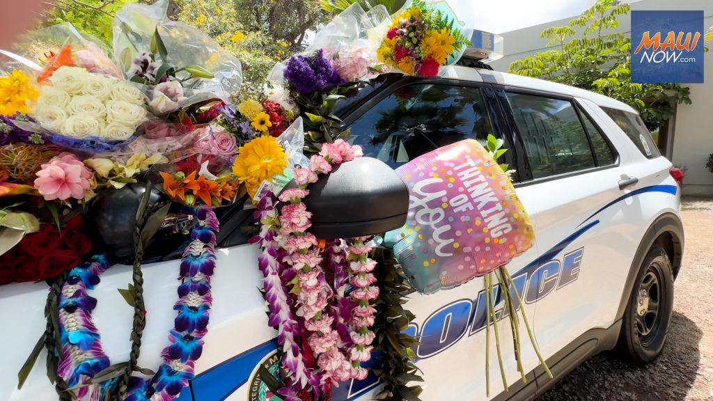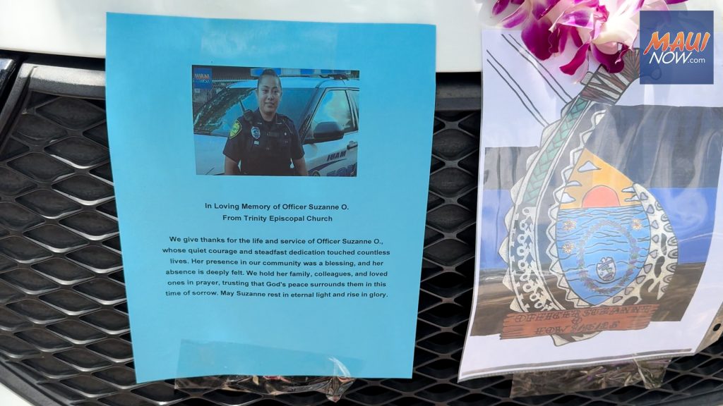 “I want to make it very clear that this agency, this department and this community are hurting very much,” said Maui Police Chief John Pelletier during an interview outside the Wailuku Police Station, beside a growing memorial. “Our hearts are heavy and the pain is real. Suzanne was a remarkable officer and an incredible human being.”