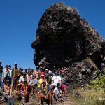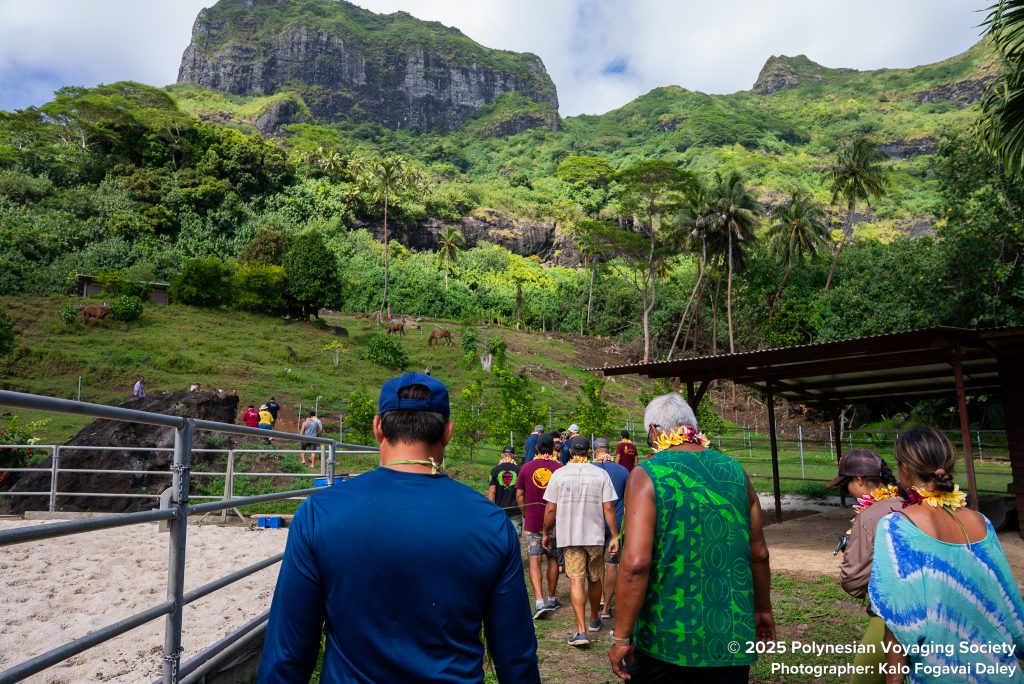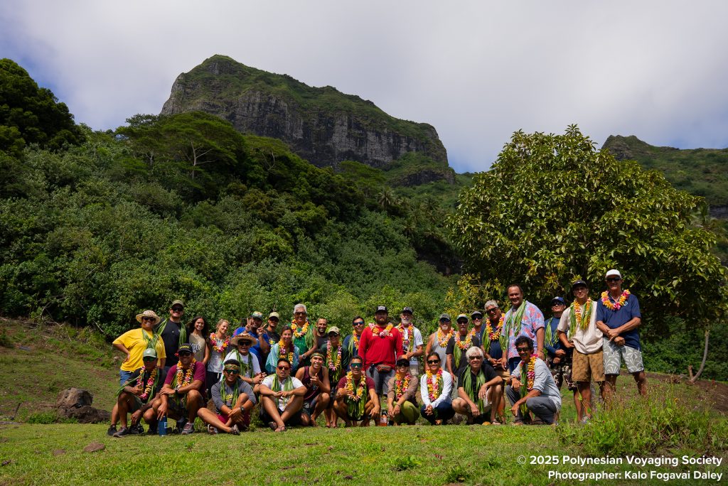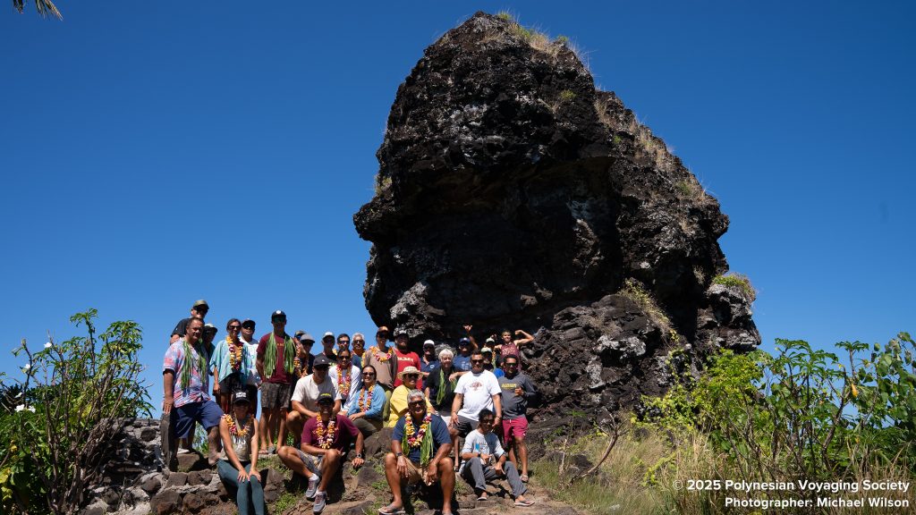 The crew also visited sacred sites in the mountains, where, as their guide explained, the spirits of the ancestors live on in the names of the pōhaku. Captain Bruce Blankenfeld reflected that in saying those names, the kūpuna continue to walk the land. Among the towering peaks is Mataihuvaʻa — “the eyes and nose of the canoe.” The story tells of the cockroach twins Tofai and Tefai, who warned the warrior Tapati about an invading canoe. From the mountain, Tapati threw his spear so forcefully that it broke off the canoe’s nose, which flew into the peak and remains as stone to this day.