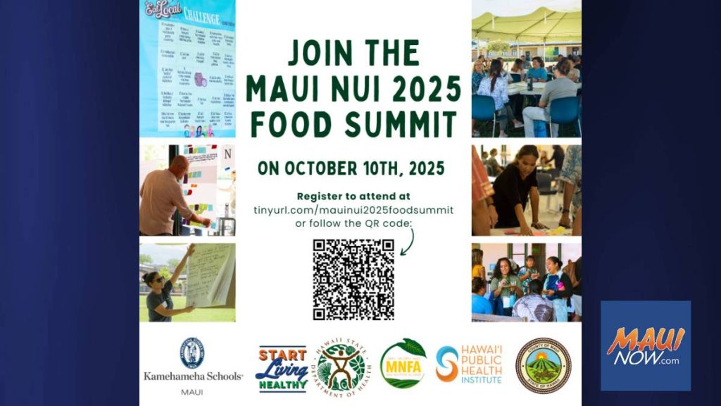 County of Maui Department of Agriculture is collaborating once again with Hawaiʻi Public Health Institute, Maui Nui Food Alliance and Kamehameha Schools Maui to strengthen local food systems through the Maui Nui 2025 Food Summit.