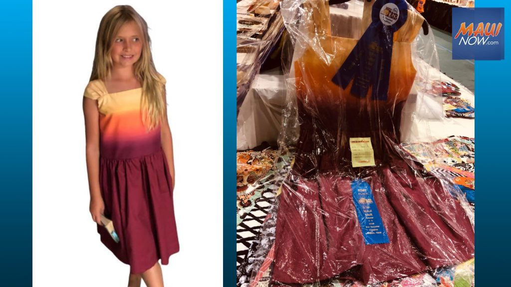 Years later, in 2019, Oberg was teaching sewing classes in Makawao Town when one of her students, 10-year-old Dillon McLellan, designed and created a project called “Sunset Dress”, designing, cutting out the fabric and sewing it entirely on her own. Oberg encouraged her to enter it in the show, and Dillon won both First Place and Best in Show. “That was when I really discovered this show to support sewing and fiber arts,” Oberg said. “I thought, next year I’d encourage all my students to enter and help bring more attention to this wonderful showcase.” That plan was interrupted by COVID, the fires, and financial constraints, but now, six years later, the show is back. “We are so grateful to the County and Festivals of Aloha for bringing back the fair,” Oberg said.