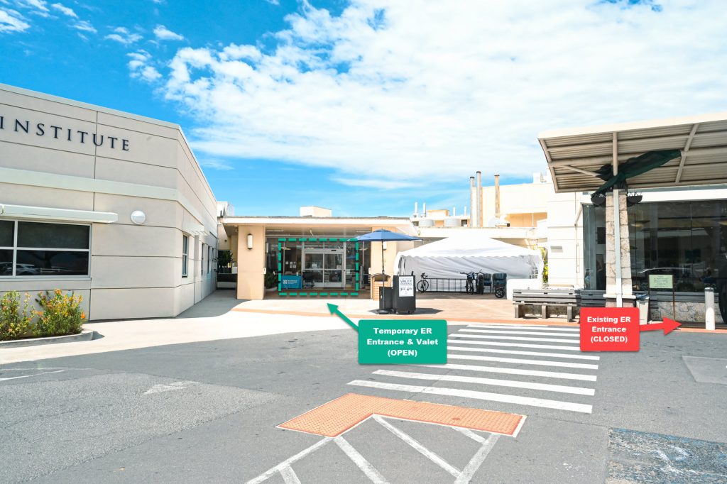 Effective Wednesday, Sept. 3, 2025, the Emergency Department entrance, registration, and waiting room at Maui Memorial Medical Center have been temporarily relocated to start construction of the new Nan and Wayne Kocourek Clinical Decision Unit.