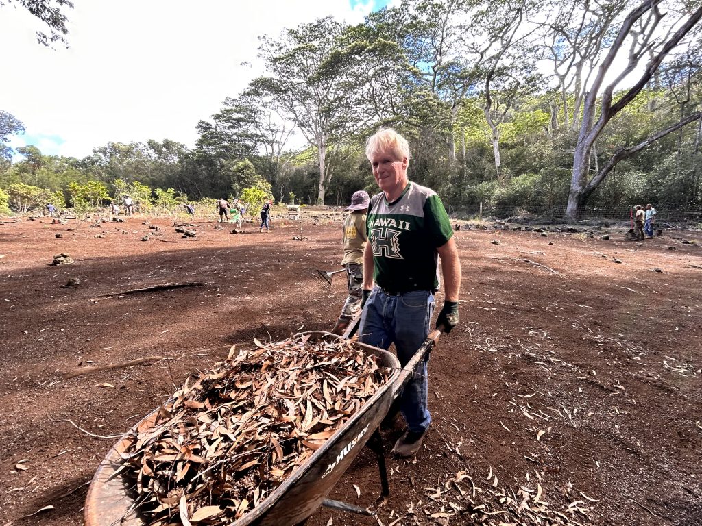The center’s volunteers have worked for the last nine years to protect and preserve the site, which includes an ancient heiau and remnants of traditional house sites. Efforts have been ongoing since 2015 to eliminate introduced trees and clear invasive plants from the area, helping to open up the canopy to restore the native understory.