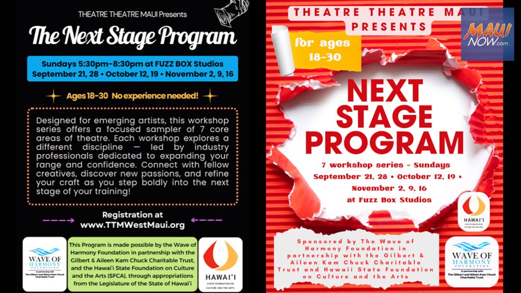 Theatre Theatre Maui is launching The Next Stage Program: a Fall Sampler Series created especially for young adults ages 18-30 interested in theatre, regardless of past experience.