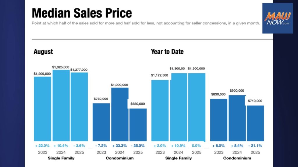 Maui’s housing market showed mixed results in August, with a sharp decline in condominium sales favoring buyers while single-family homes remained steady, according to a report released this month by the Realtors Association of Maui.
