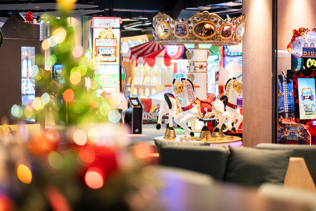 Step into a winter wonderland at this festive pop-up bar, where holiday cocktails and cheerful décor set the mood. Guests can sip, relax and then dive into the fun with duckpin bowling, Topgolf Swing Suites, VR adventures and classic arcade favorites.