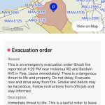 Evacuation orders and warnings remain in effect following a fire first reported at 1:30 p.m. on Tuesday, Sept. 23, 2025 near Holomua Road and Baldwin Avenue in Pāʻia.